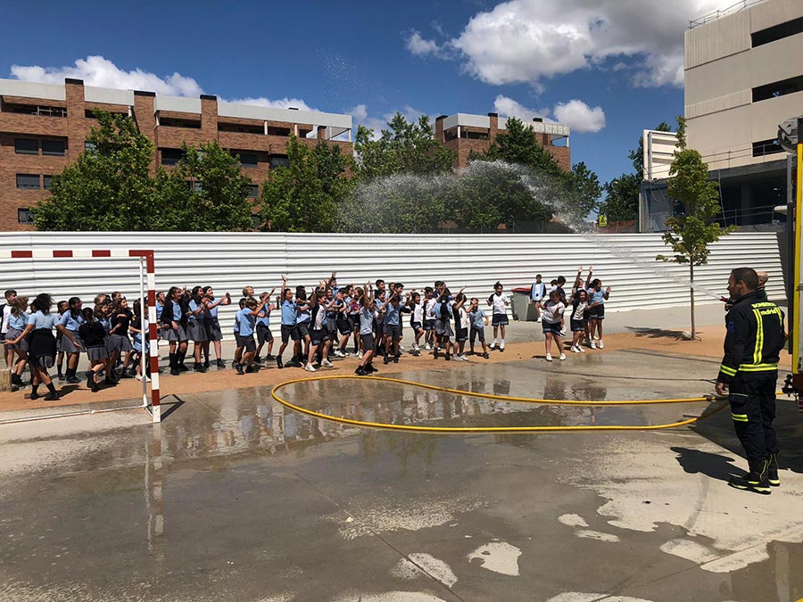 Después se han unido en el patio los alumnos de Infantil participando todos en la parte festiva de la visita: Sirenas y chorros de agua….. Una mañana didáctica y divertida.